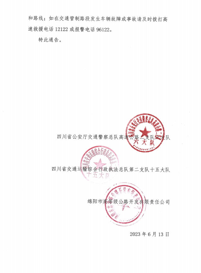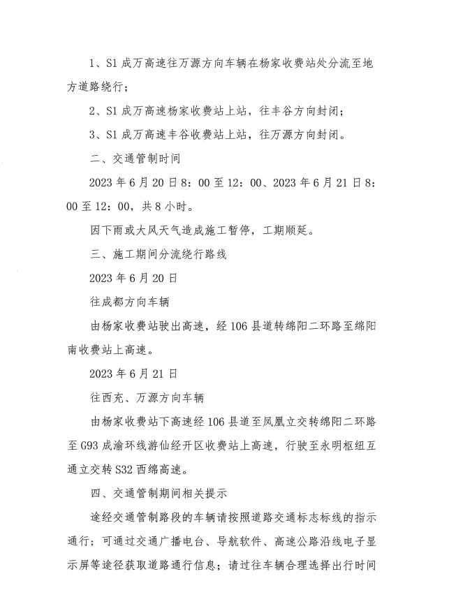 關(guān)于S1成萬高速磨家至永明段實(shí)行交通管制的通告
