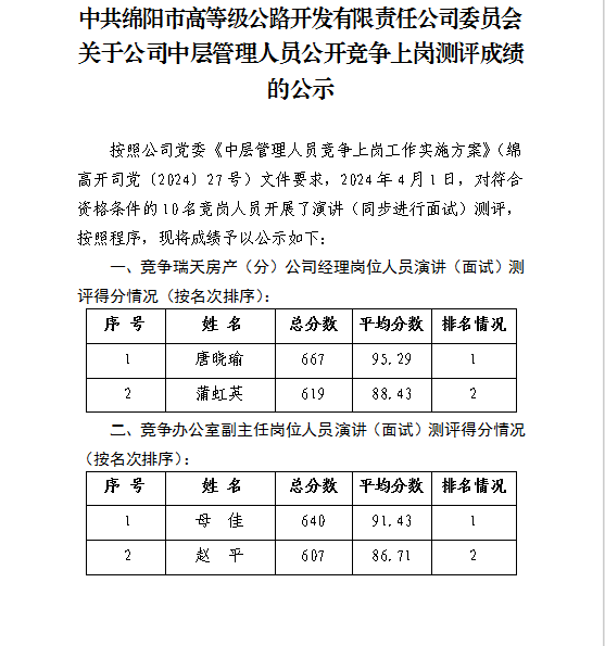 招聘公告 面試成績(jī) 擬聘人員信息